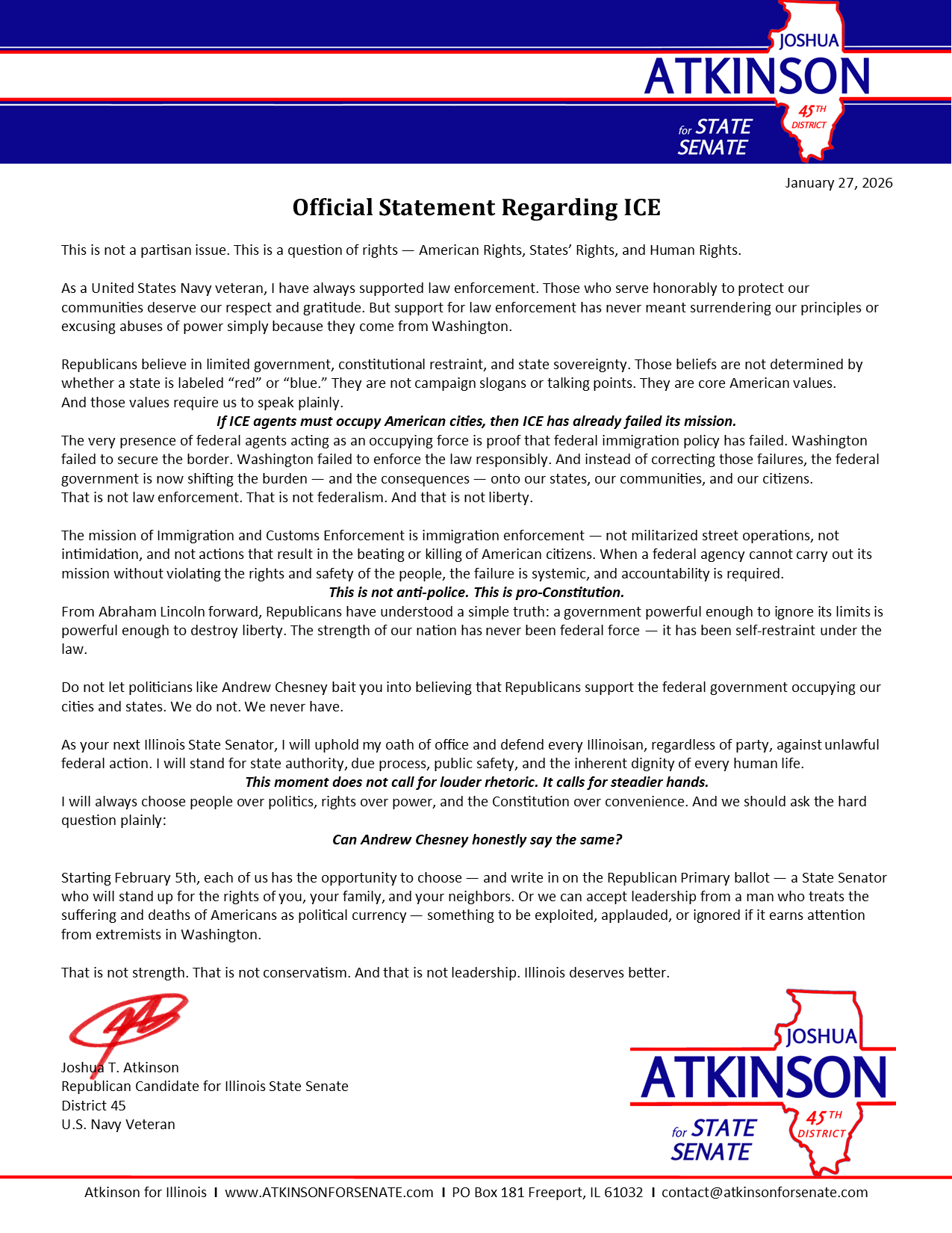 Want to know where Josh stands on an issue or share your thoughts? Fill out the form below—your message goes straight to Josh himself. No filters, no staffers—just real talk, direct from the candidate. He’s happy to answer personally.